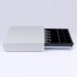 Sertar de bani cu spatii configurabile si deschidere electronica.