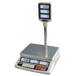 Cantarul electronic Dibal G325-15/30-ACC are dubla scala de masurare si precizie, capacitate maxima de cantarire de 6/15 kg sau 15/30kg, precizie de 5/10g, platan din inox cu dimensiunea de 303x233mm, interfata Serial, 2 ecrane LCD si suport telescopic pentru display-ul pentru clienti.